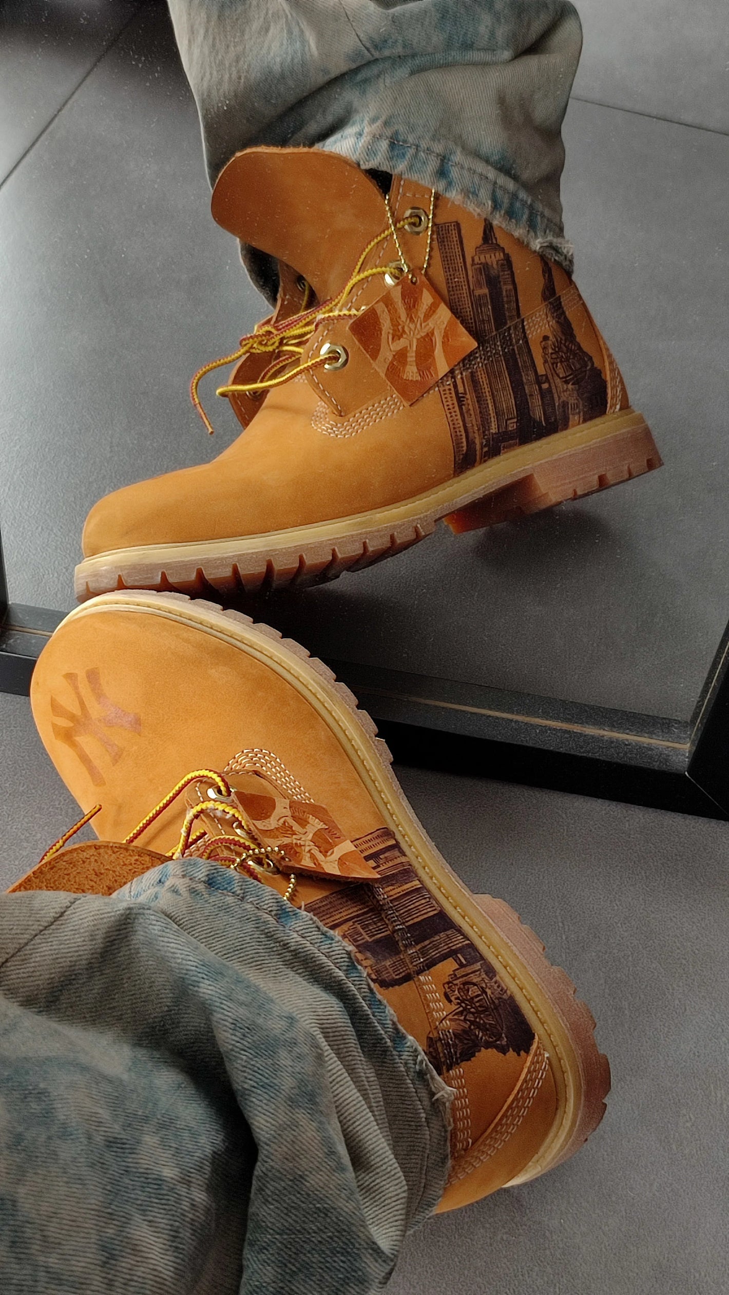 A rugged classic with a city edge. These wheat nubuck boots feature a padded black collar for comfort, durable lace-up design, and a bold New York–inspired graphic with Yankees detailing. Finished with a sturdy rubber sole and premium hardware, they’re built for everyday wear with standout street style.
